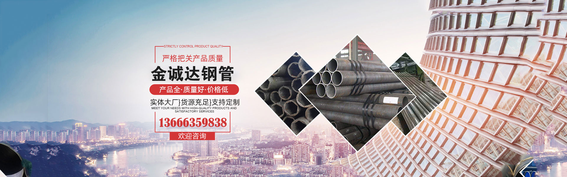 專業銷售:無縫鋼管 方管矩管 異形管 精密鋼管 合金鋼管 螺旋鋼管 直縫焊管 輸送流體管 薄壁管 厚壁管等。公司嚴控質量,確保所有出廠產品